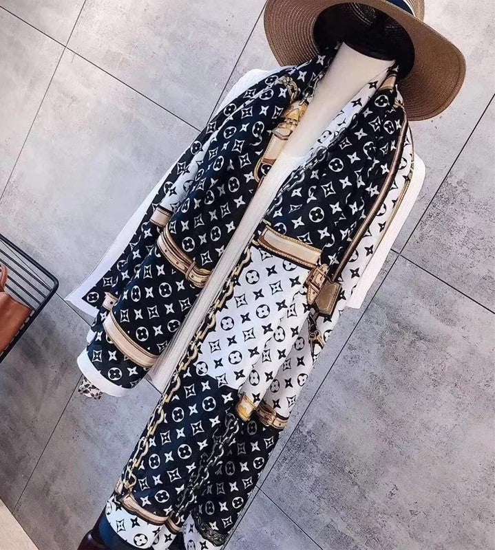 This elegant silk scarf offers a luxurious, elongated design perfect for sophisticated styling.